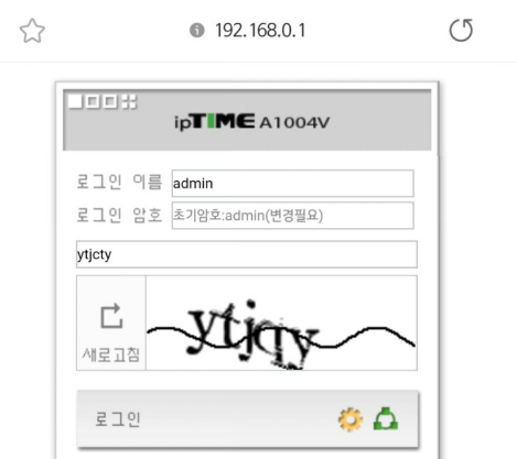 만약 로그인 이름과 암호, 보안문자를 똑바로 입력했는데 로그인이 되지 않을 경우 이름과 암호를 admin1234로 설정하거나 공유기를 초기화 한 후 재접속해 주세요.