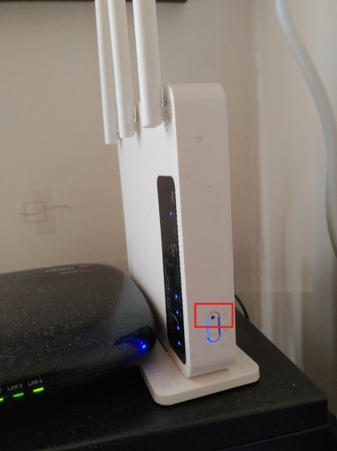 iptime A1004V 공유기 기준에서 리셋 버튼의 위치입니다. 리셋 버튼은 손으로 누를 수 없는 구조이기 때문에 뾰족한 형태로 눌러줘야 합니다. 옷핀, 바늘, 유심트레이 등 뾰족한 물건으로 약 10초 동안 지긋이 눌러주세요. CPU LED가 깜빡이면 초기화가 완료됩니다.