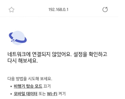 와이파이가 연결된 기기에서 192.168.0.1 링크로 접속합니다.