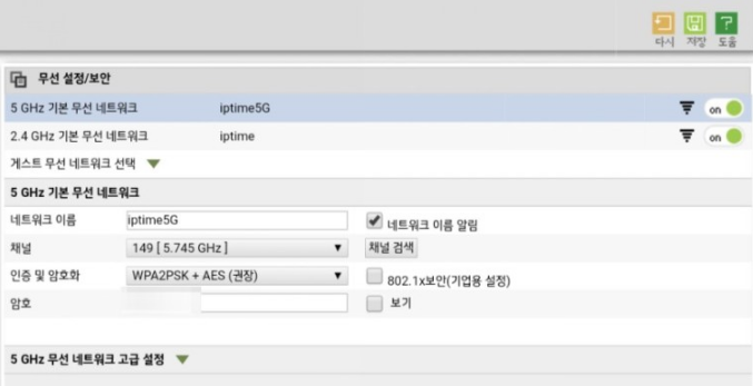 저는 와이파이를 2.4GHz / 5GHz 주파수로 동시에 활용하고 있습니다. 5GHz는 최대 접속 속도가 더 빠르지만 방문이나 벽 등 장애물을 지나는 순간 와이파이 신호가 약해지기 때문입니다. 2.4GHz는 최대 접속 속도가 느린 대신 안정성 있게 더 멀리 떨어진 곳까지 신호가 유지되어서 각자 장단점이 있으니 상황에 맞게 사용하시기 바랍니다. 하지만 여기서 끝내면 안 됩니다. 관리자 계정과 암호가 admin이기 때문에 이를 알고 있을 경우 누군가가 악용해서 비밀번호를 변경하는 등 피해를 입을 수도 있기 때문입니다.